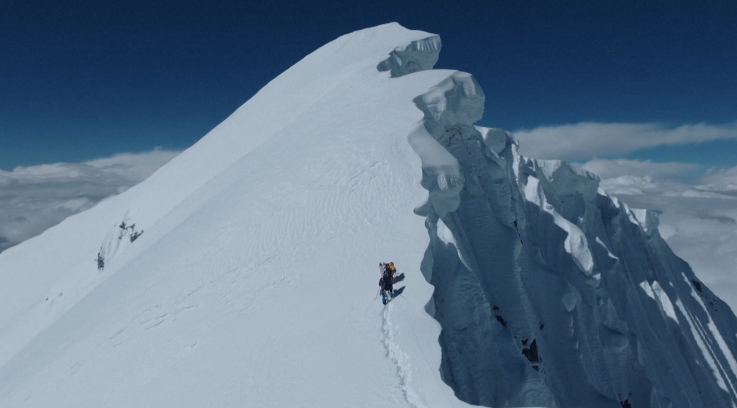 Un video postat pe contul său de Facebook îl arată coborând pe straturi groase de zăpadă. Munții cei mai înalți ai lumii sunt vizibili în fundal.