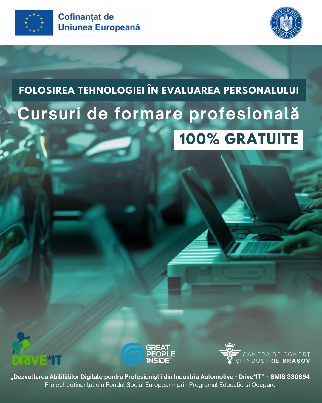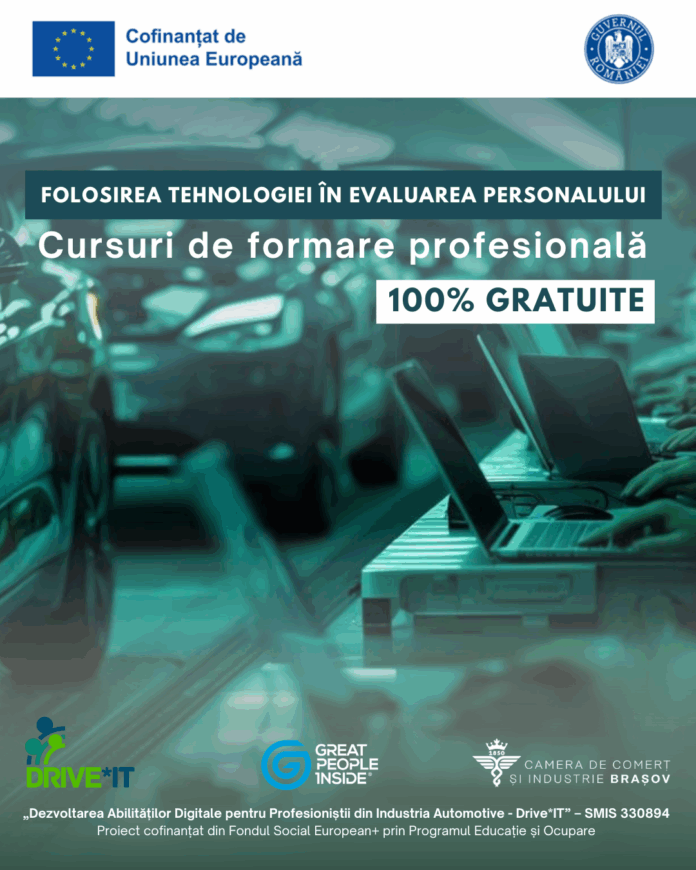 Angajații companiilor din industria automotive (cu cod CAEN 28 și 29) din județul Brașov au acum oportunitatea de a participa gratuit la un program de formare profesională dedicat dezvoltării competențelor digitale în domeniul resurselor umane.