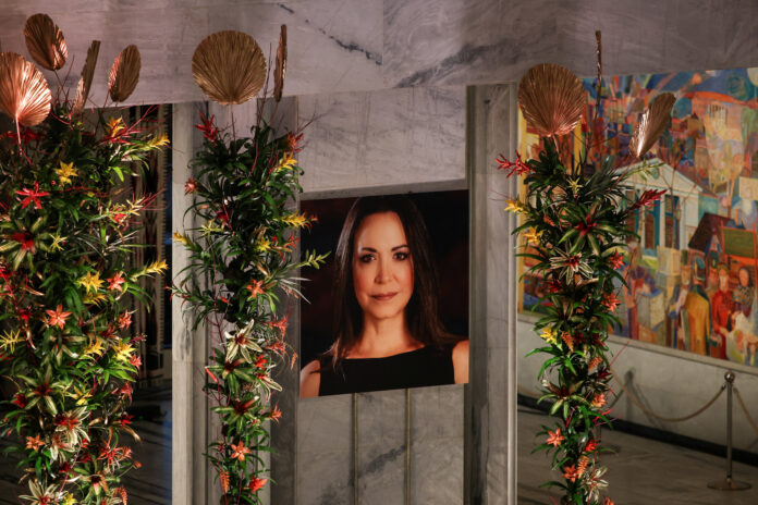 Un portret mare al ei a fost expus în Primăria din Oslo. Laureata în vârstă de 58 de ani trebuia să fie prezentă, în ciuda interdicției de călătorie impuse de autoritățile venezuelene și după mai bine de un an petrecut în clandestinitate. Totuși, nu a reușit să ajungă la timp.