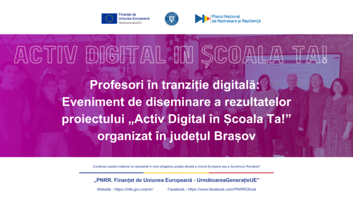 În perioada 28 – 29 ianuarie 2026, la Hotel Kolping din Brașov, va avea loc evenimentul de diseminare a rezultatelor proiectului „Activ Digital în Școala Ta!” (Cod PNRR ID_23)!” organizat de Asociația GO-AHEAD, în parteneriat cu Casa Corpului Didactic a Județului Maramureș și Casa Corpului Didactic Brașov.