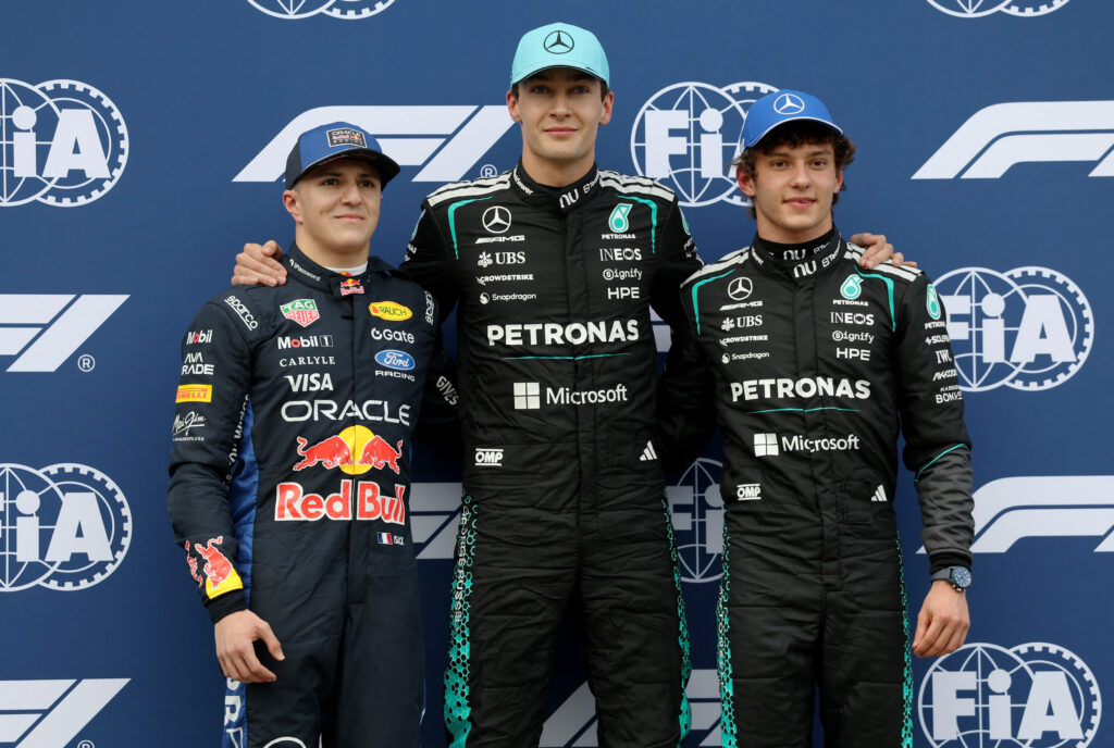 Pilotul Red Bull Isack Hadjar a obținut al treilea timp, însă a fost cu aproape opt zecimi de secundă mai lent decât Russell.